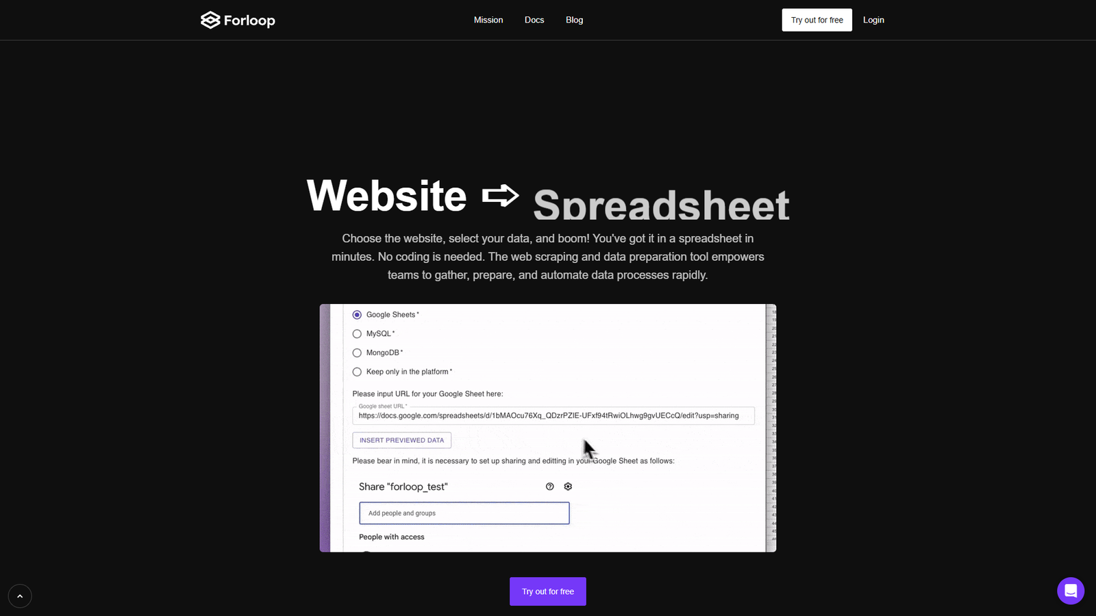 Forloop.ai — no-code-инструмент для веб-скрейпинга и автоматизации работы с данными. Пользователь выбирает сайт, отмечает нужные элементы, а результат за несколько минут оказывается в таблице или базе данных.