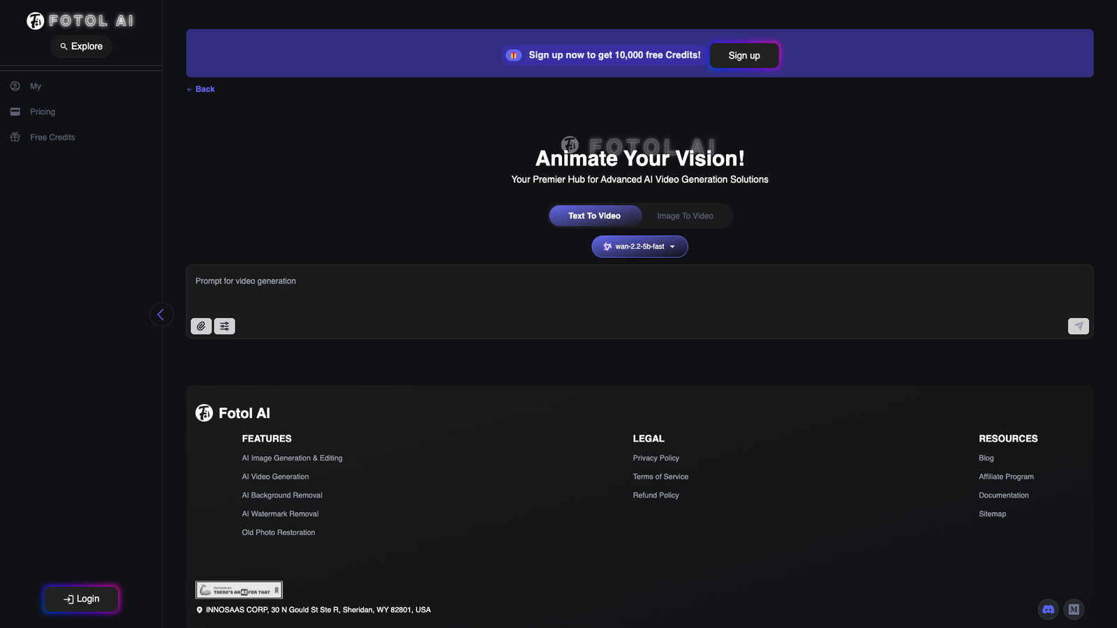 Пользователь вводит текстовый запрос или загружает картинку, после чего Fotol AI создает видео по заданному описанию. Поддерживается режим Text To Video и Image To Video, что удобно как для идейных набросков, так и для готовых визуальных концепций.