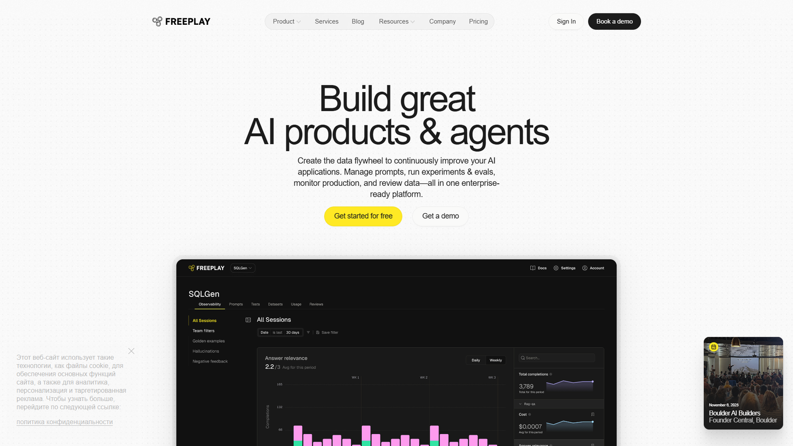 Freeplay — платформа для оценки и наблюдаемости (observability) AI-систем, которая помогает командам создавать и масштабировать качественные продукты на базе ИИ. Сервис объединяет в одном месте работу с промптами, эксперименты, автоматические и ручные оценки, а также мониторинг продакшн-среды.