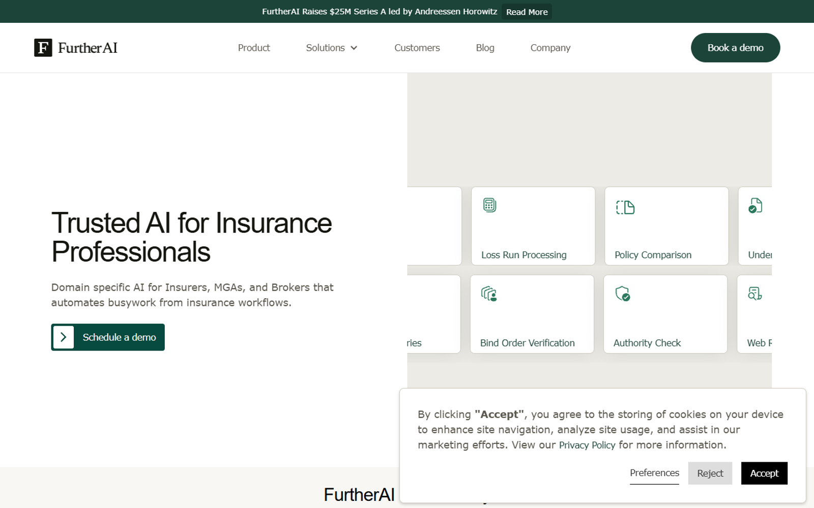 FurtherAI ориентирован на крупные агентства, брокеров и страховые компании с большим объемом премий и программ. AI-ассистенты помогают ускорить андеррайтинг, уменьшить ручной ввод данных и снизить количество ошибок при работе с документами и полисами.