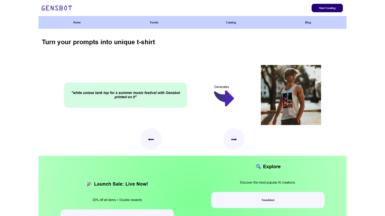 Gensbot превращает текстовые подсказки в готовые дизайны для мерча и печатной продукции. Пользователь описывает желаемый предмет — от футболки до кружки или визитки — а нейросеть генерирует визуальную концепцию и макет.