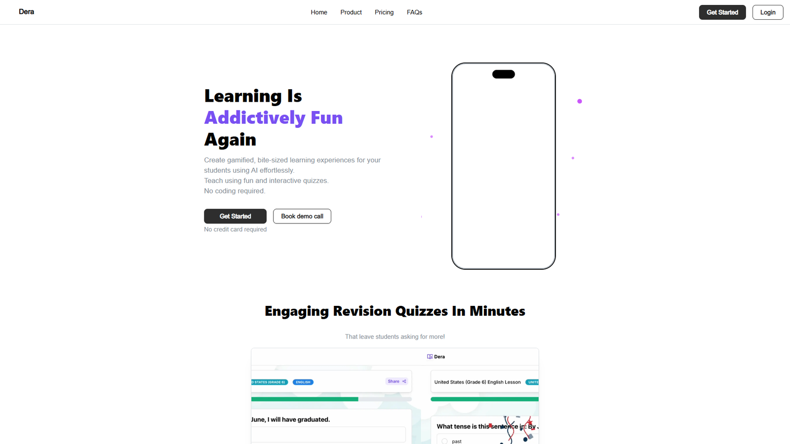 Dera — инструмент для учителей и методистов, который превращает учебный материал в игровые квизы и короткие интерактивные уроки с помощью ИИ. Подходит для школьных занятий, кружков, онлайн-курсов и самостоятельной подготовки.