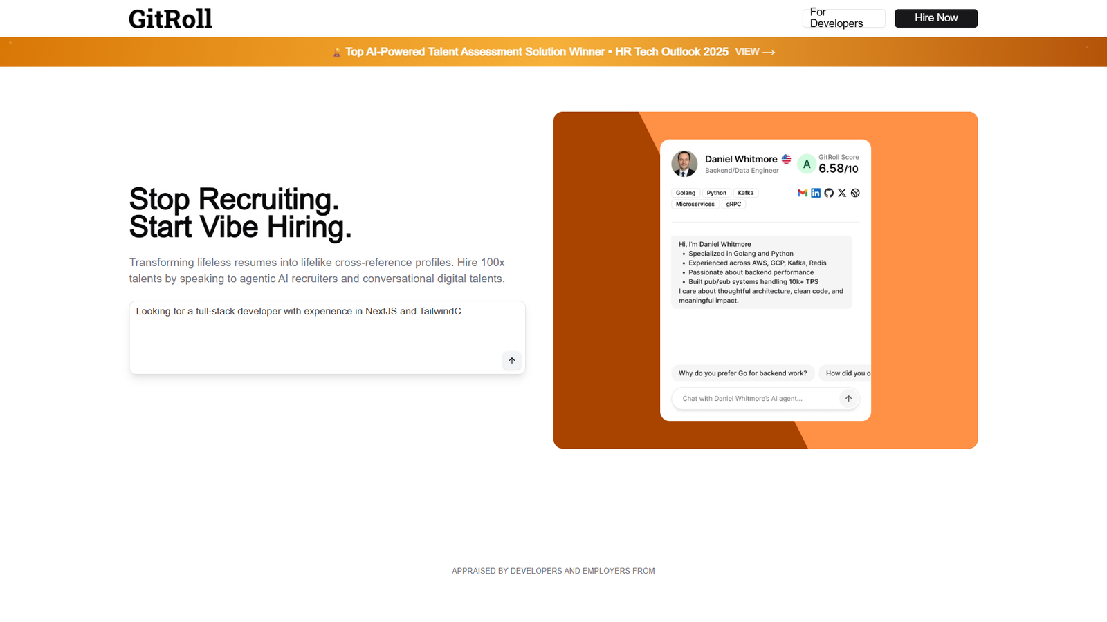 Концепция Vibe Hiring заменяет классический отбор по резюме диалогом с агентным AI-рекрутером Shrimpy. Достаточно описать нужный профиль разработчика, после чего ИИ подбирает кандидатов и объясняет, почему именно они подходят под запрос.