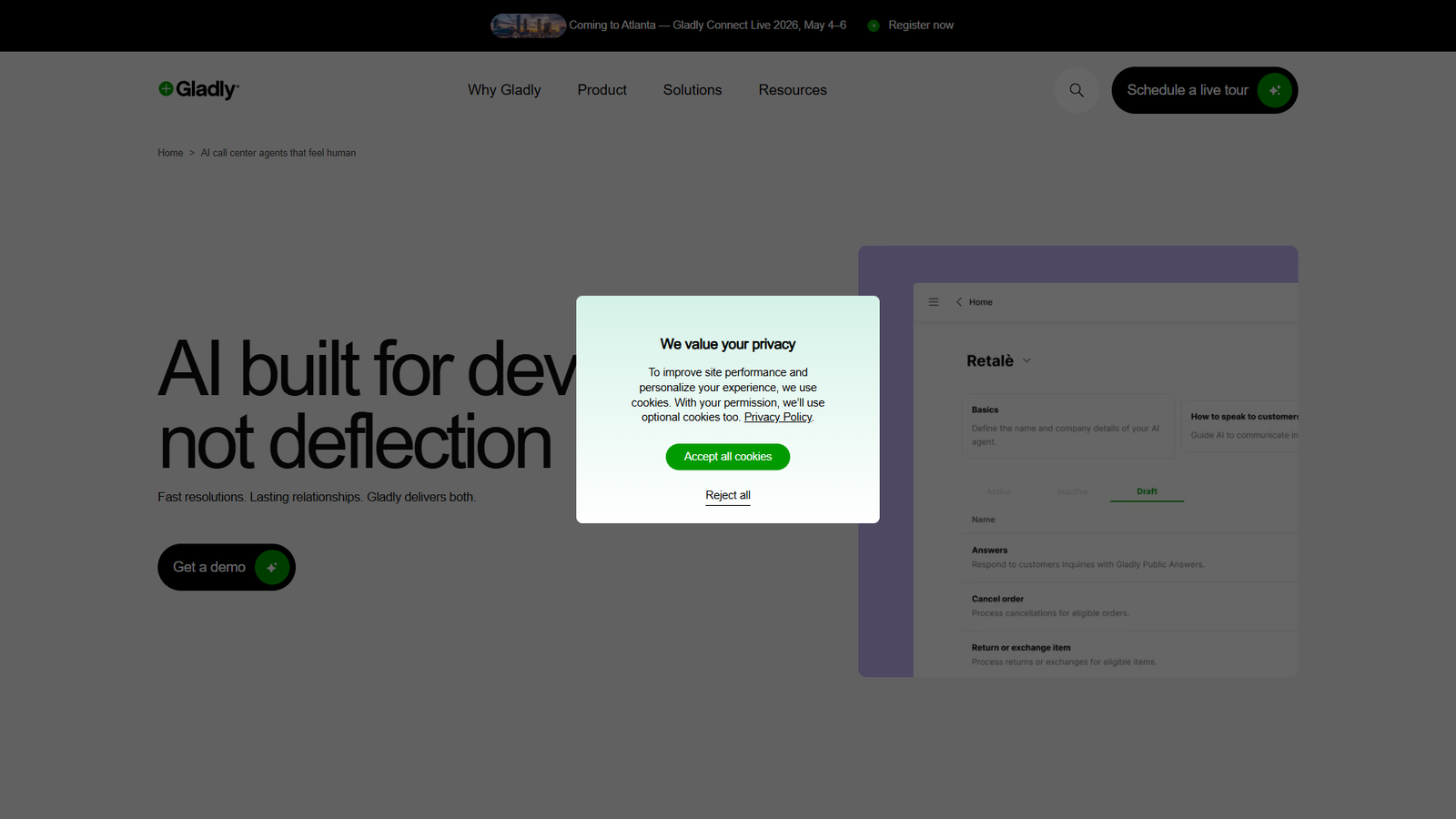 Gladly AI Call Center Agents — это платформа ИИ-агентов для колл-центров и клиентской поддержки, которые ведут себя максимально «по‑человечески». Сервис помогает снять узкие места в CX, ускорить ответы и при этом не жертвовать качеством общения.