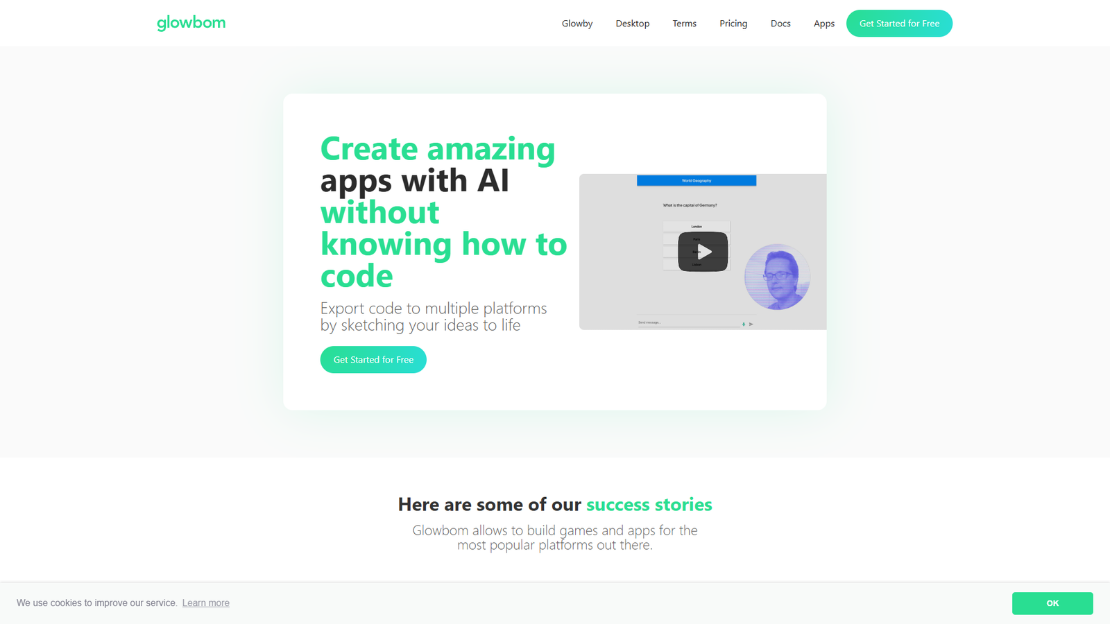 Glowbom — AI-платформа для создания приложений без навыков программирования. Вы описываете идею или «наброском» формулируете, что должно получиться, а сервис помогает превратить это в рабочий интерфейс и логику.