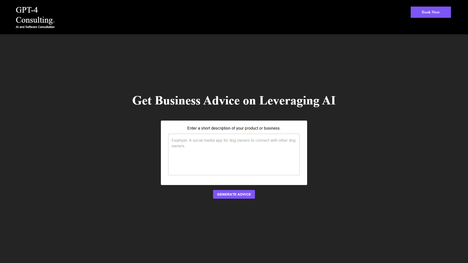 GPT-4 Consulting — онлайн-сервис, который помогает предпринимателям и компаниям получать точечные бизнес-советы по внедрению и использованию искусственного интеллекта. Достаточно кратко описать ваш продукт, нишу или бизнес-задачу — и система с опорой на GPT‑4 сгенерирует рекомендации.