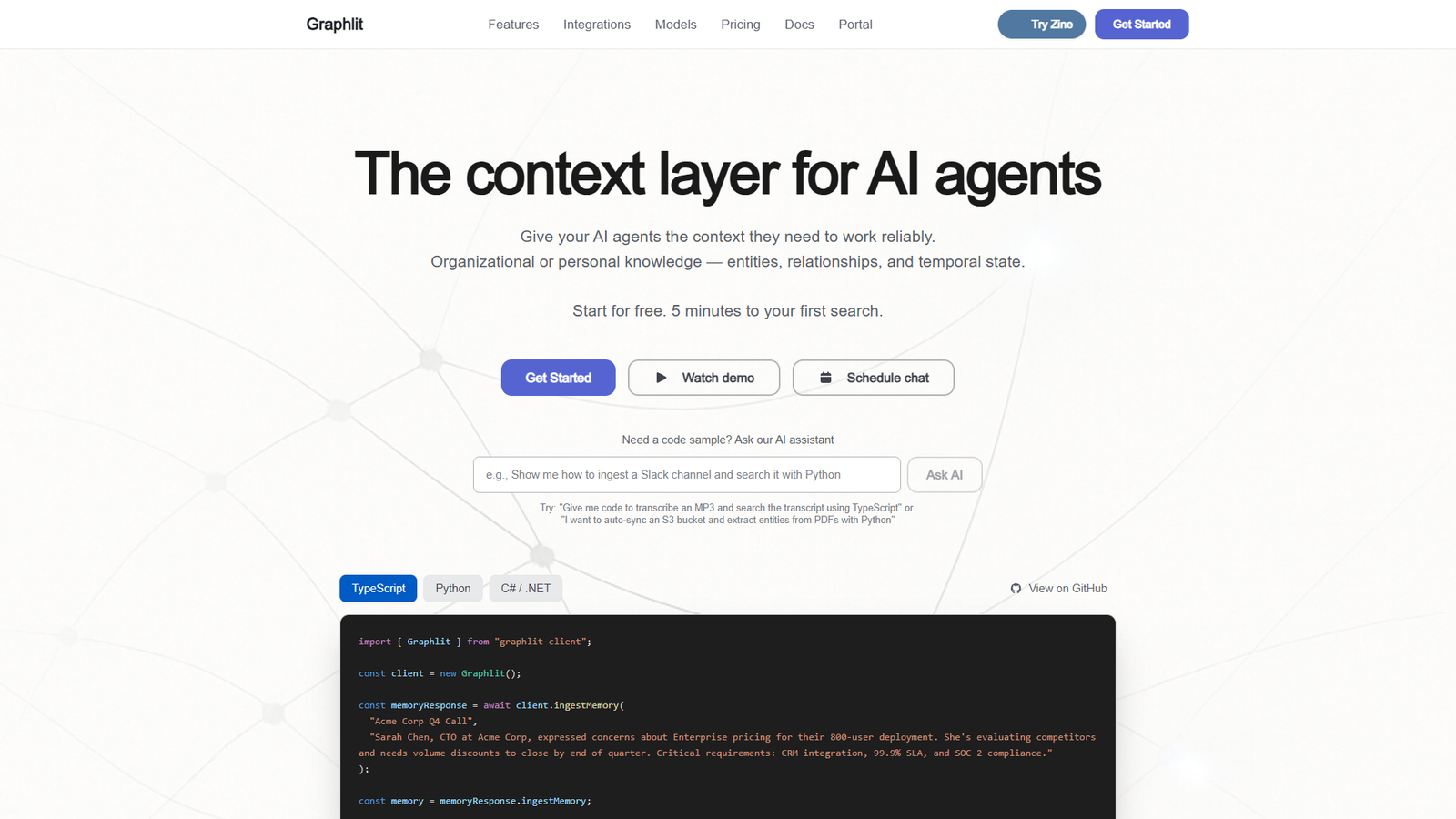 Graphlit — это контекстный слой для AI-агентов, который подключается к вашим рабочим инструментам и автоматически обеспечивает модели актуальными данными. Сервис синхронизируется в реальном времени со Slack, GitHub, Jira, S3 и другими источниками, снимая с разработчиков рутину по сбору и обновлению контекста.