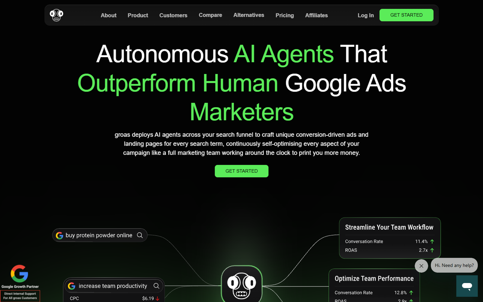 groas — это автономные AI-агенты, которые берут на себя полное управление рекламой в Google Search. Система работает как виртуальная команда маркетологов, которая не выключается ночью и не нуждается в ручных правках.