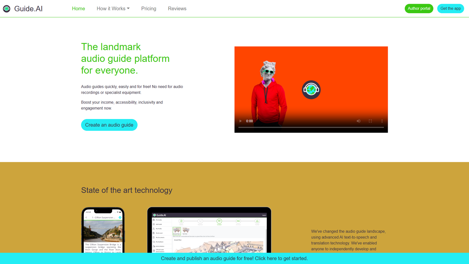 Guide.AI — это платформа для создания и публикации аудиогидов, которая использует передовые технологии синтеза речи и автоматического перевода. Сервис позволяет выпускать аудиогиды сразу на нескольких языках, не записывая голос и не привлекая профессиональных дикторов или переводчиков.