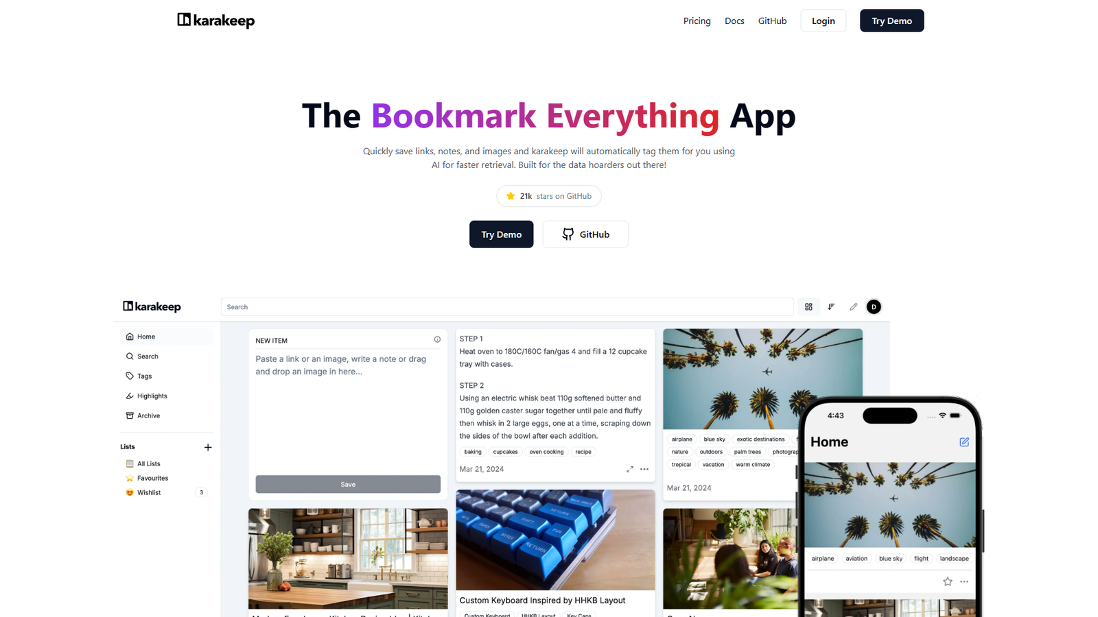 Karakeep ориентирован на пользователей, которые системно собирают данные: статьи, документацию, референсы, медиа. Проект активно развивается в открытом репозитории и уже набрал десятки тысяч звёзд на GitHub, что делает его заметным инструментом в сообществе разработчиков.