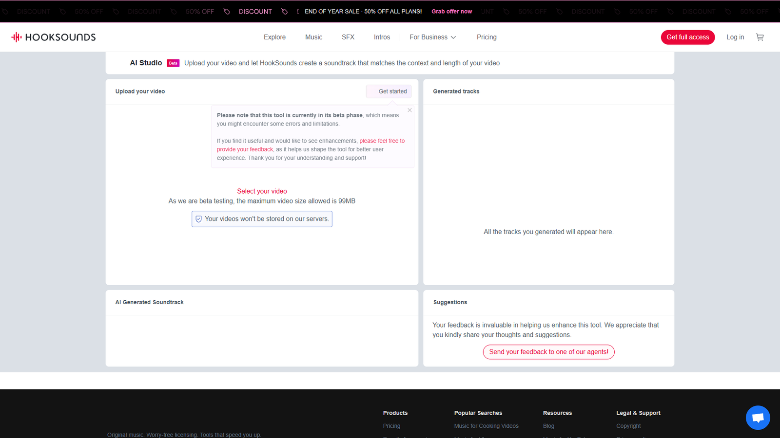 HookSounds AI Studio сейчас находится в бета‑версии, поэтому возможны небольшие ограничения, но команда активно улучшает продукт на основе отзывов пользователей. Это удобный способ протестировать, как ИИ может ускорить ваш креативный процесс и сделать подбор музыки для видео максимально простым и предсказуемым.