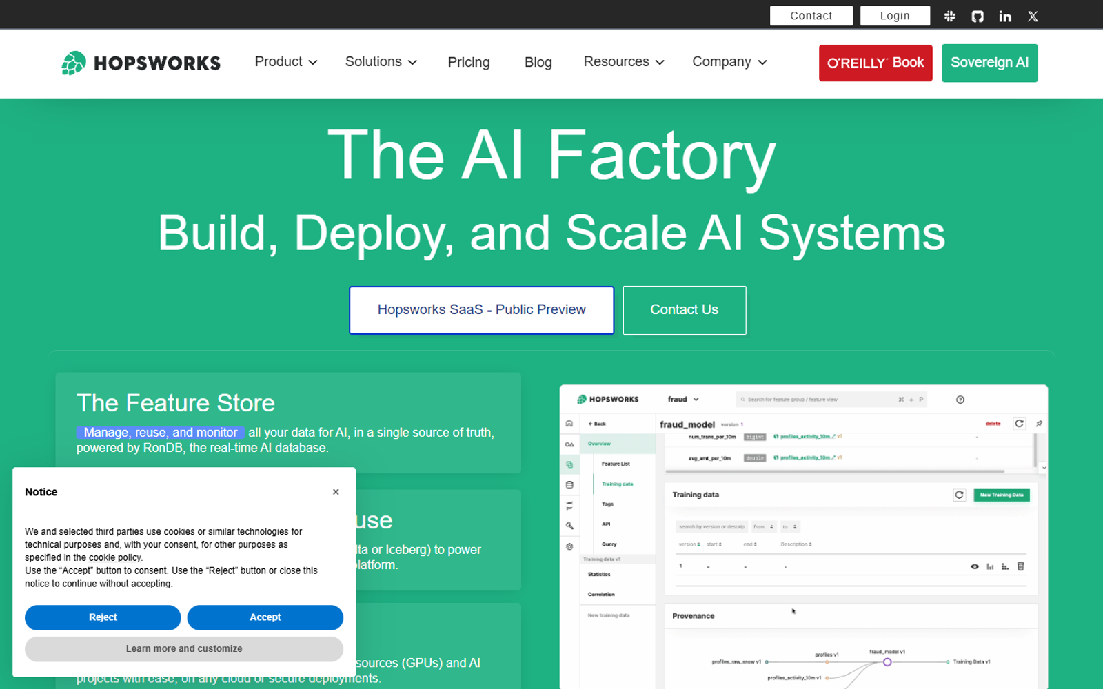 Hopsworks — это AI Lakehouse для команд данных и машинного обучения, ориентированный на работу в реальном времени. В его основе — промышленный feature store и база данных RonDB с задержками на уровне миллисекунд.