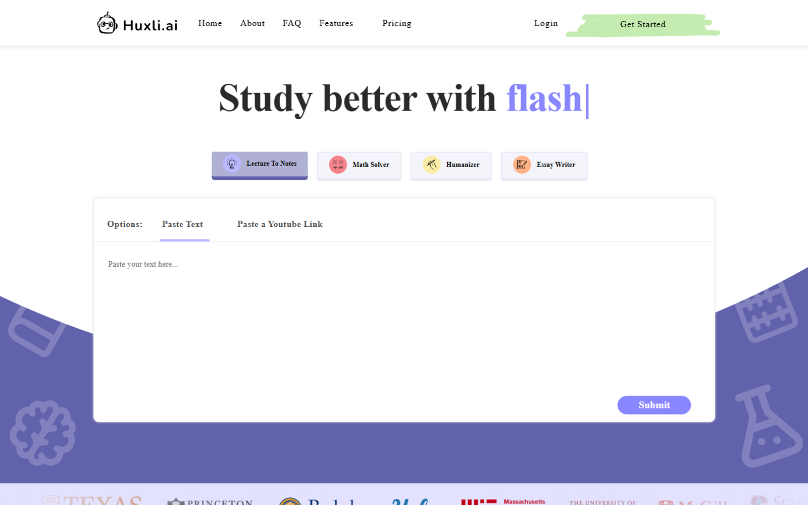 Huxli — это многофункциональный AI-ассистент для студентов, который помогает учиться быстрее, получать более высокие оценки и тратить меньше времени на домашние задания. Платформа объединяет в одном месте конспектирование, решение задач и написание работ.