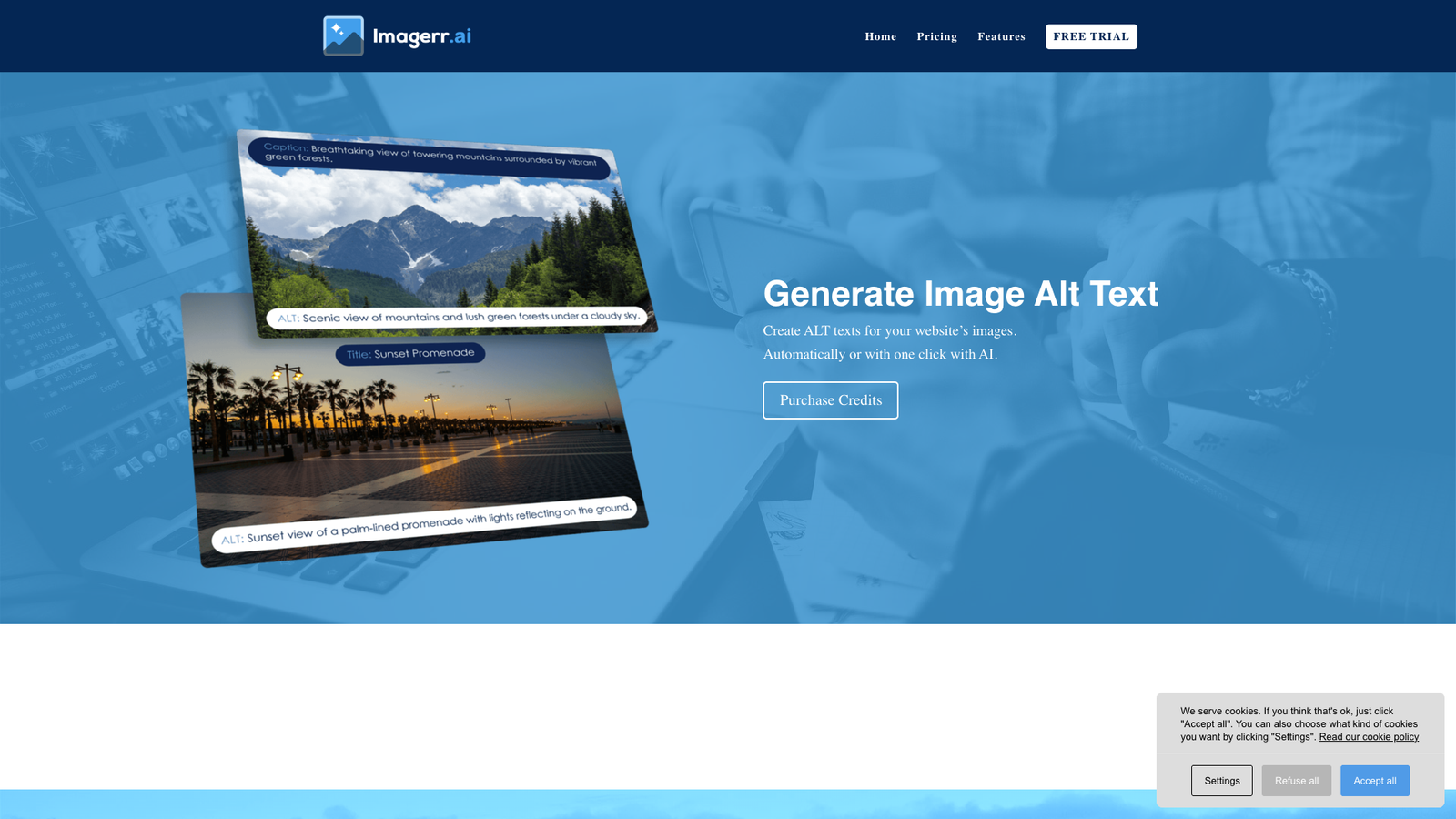Imagerr AI автоматизирует создание alt-текстов для изображений и помогает поддерживать доступность сайта. Вместо ручного описания десятков картинок владелец сайта загружает их в систему и получает готовые, структурированные подписи.