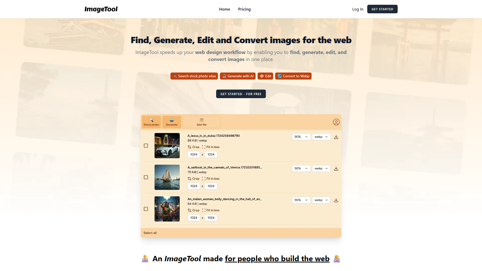 ImageTool — это онлайн-сервис, который объединяет в одном интерфейсе поиск, генерацию, редактирование и конвертацию изображений для веба. Он помогает дизайнерам, разработчикам и маркетологам быстрее подбирать и готовить графику для сайтов и веб-приложений.