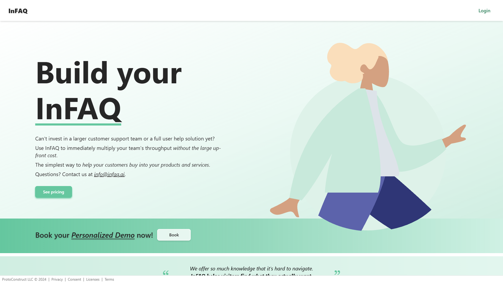 InFAQ — это AI-инструмент для сайтов, который превращает разрозненную базу знаний в удобный интерактивный помощник. Посетители задают вопросы в естественной форме, а система находит нужные ответы в документации, справке или контенте компании.