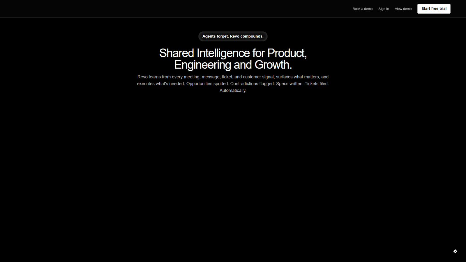 Revo — корпоративный ИИ-слой, который непрерывно «думает» за компанию. Он обрабатывает встречи, переписки, тикеты, продуктовые решения и сигналы от клиентов, превращая разрозненные данные в общую, постоянно обновляемую картину.