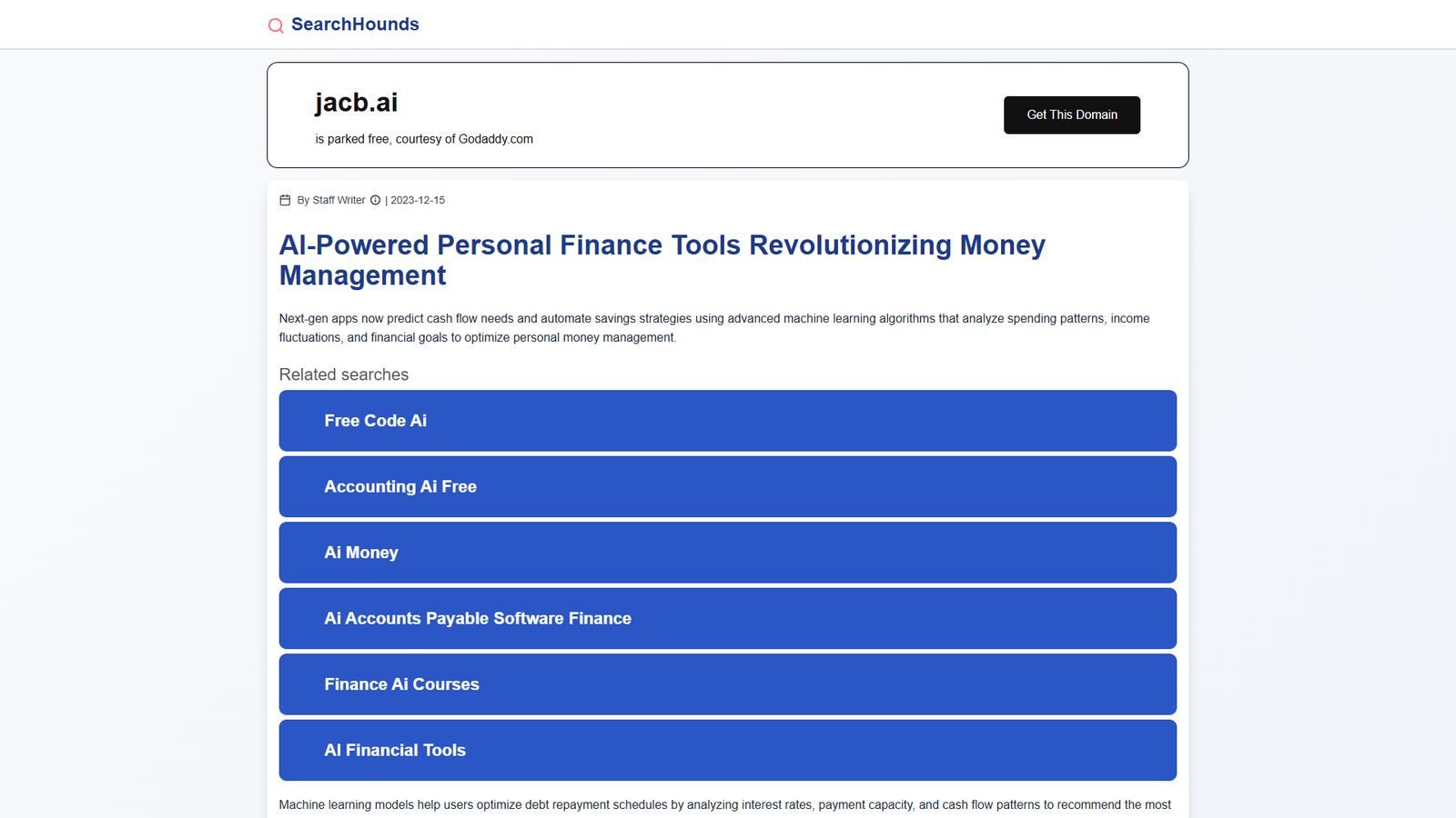 Сайт jacb.ai сейчас фактически представляет собой припаркованный домен с описанием идеи. Информация отражает направление развития ИИ-инструментов для управления личными финансами, но не даёт доступа к полноценному приложению или кабинету пользователя.