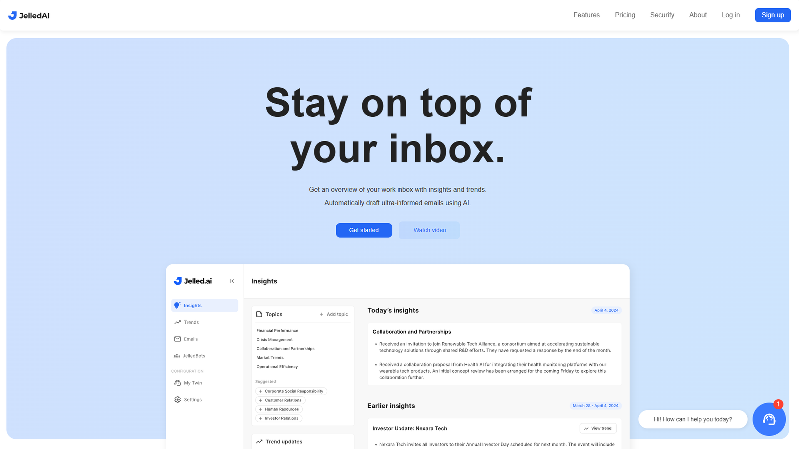 Jelled.ai помогает держать рабочую почту под контролем и не пропускать важные сигналы. Инструмент анализирует входящие сообщения, выявляет ключевые темы и подсвечивает то, что требует реакции в первую очередь.