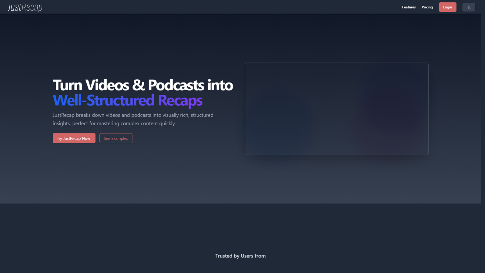 JustRecap превращает длинные видео и подкасты в структурированные конспекты с наглядными элементами. Вместо сплошного текста пользователь получает логично разбитый обзор, который удобно просматривать и к которому легко возвращаться.