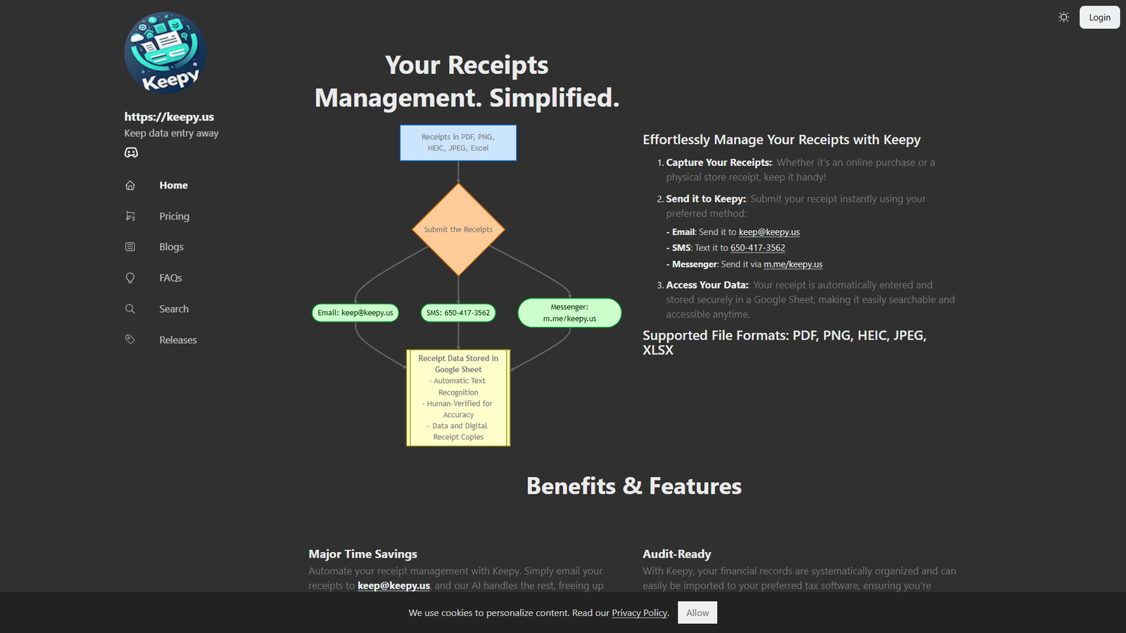 Keepy автоматизирует работу с чеками и избавляет от ручного ввода данных. Пользователь просто пересылает чек в любом удобном формате, а структурированная информация оказывается в Google Sheets.