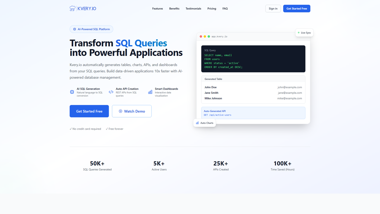 Kvery.io превращает обычные SQL-запросы в готовые приложения и аналитические инструменты. Вместо ручной сборки таблиц, графиков и API разработчик пишет запрос, а система автоматически строит поверх него интерфейсы и визуализации.