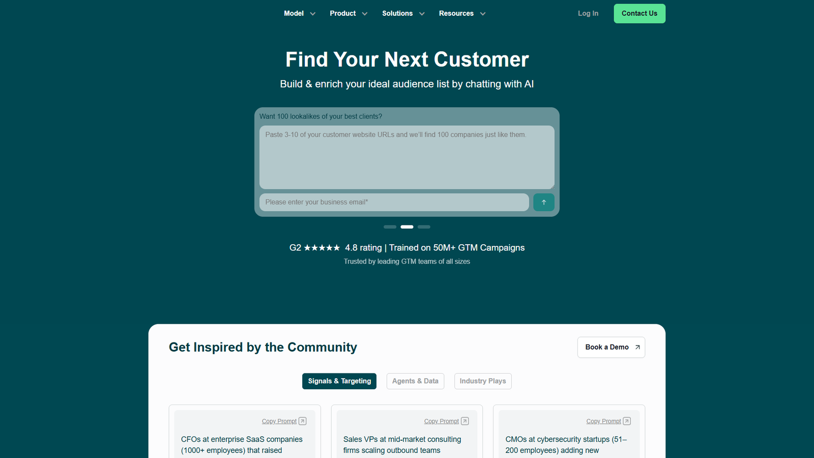Сервис позволяет строить и обогащать списки целевой аудитории в диалоге с ИИ: просто опишите, кому вы хотите продавать, и Landbase подберёт похожих на ваших лучших клиентов, предложит кастомные сигналы и критерии отбора. Платформа обучена на более чем 50 млн GTM‑кампаний, что даёт ей доступ к богатому паттерну успешных стратегий.