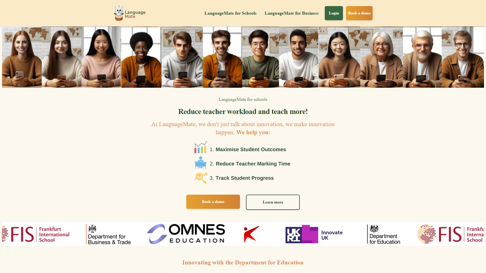 LanguageMate — это платформа с ИИ-инструментами, созданная специально для преподавателей иностранных языков и школ. Сервис помогает сократить рутину, автоматизировать часть подготовки к занятиям и освободить больше времени для живого общения с учениками.