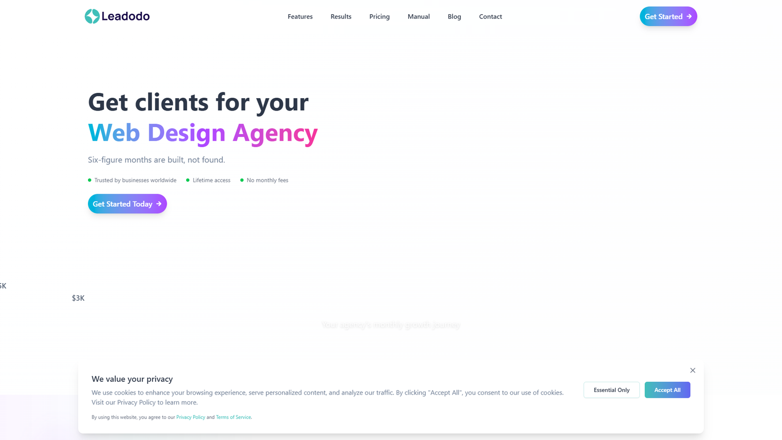 Leadodo создан специально для веб-дизайн‑агентств и фриланс‑студий, которые хотят выйти на стабильные «шестизначные» месяцы без найма отдельного отдела продаж. Благодаря пожизненному доступу без ежемесячных платежей сервис особенно выгоден небольшим командам и начинающим агентствам.