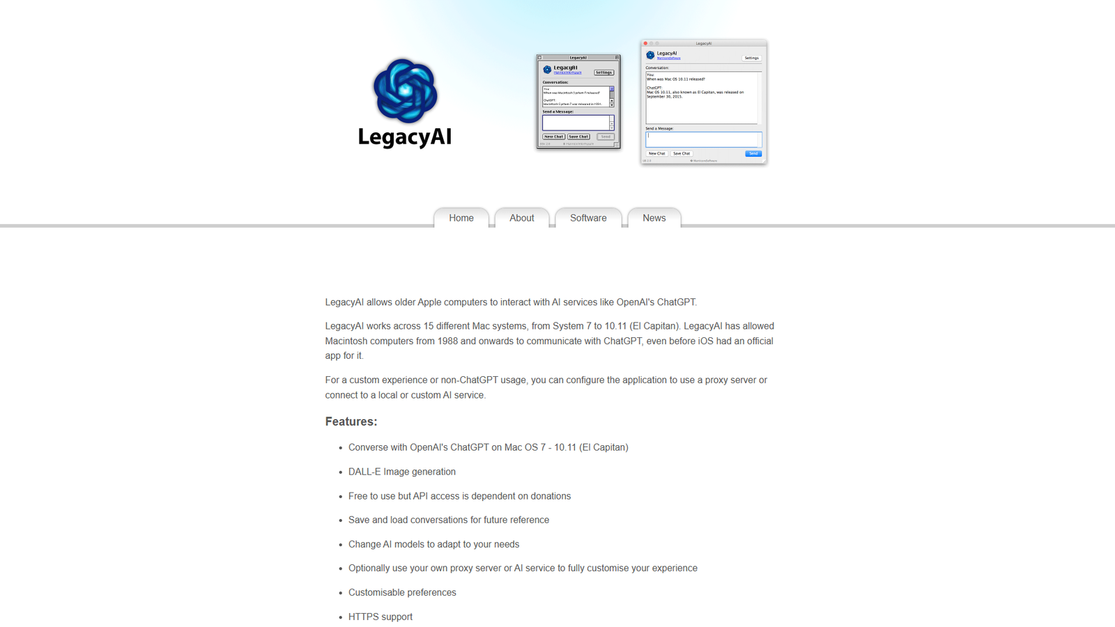 LegacyAI — это специализированное приложение, которое позволяет старым компьютерам Apple Macintosh напрямую общаться с современными ИИ-сервисами, включая OpenAI ChatGPT и DALL·E. Инструмент поддерживает более 15 версий систем — от классического System 7 до macOS 10.11 El Capitan, охватывая 68k, PowerPC и ранние Intel‑Mac.