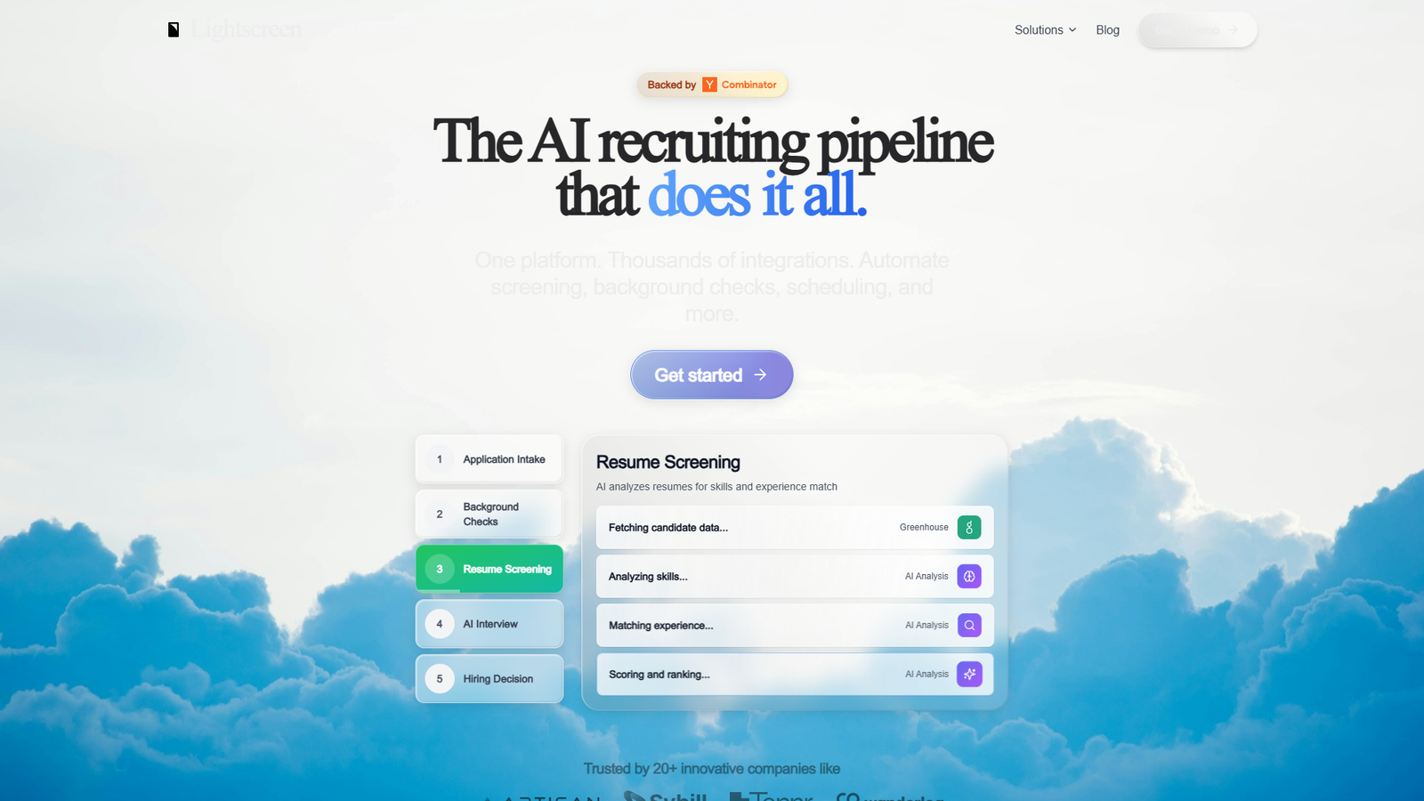 Lightscreen — это AI-платформа для автоматизации полного рекрутингового конвейера, от приёма заявки до финального решения по найму. Сервис выступает как «AI‑копилот» для HR‑команд, снижая стоимость найма и повышая качество отбора кандидатов.