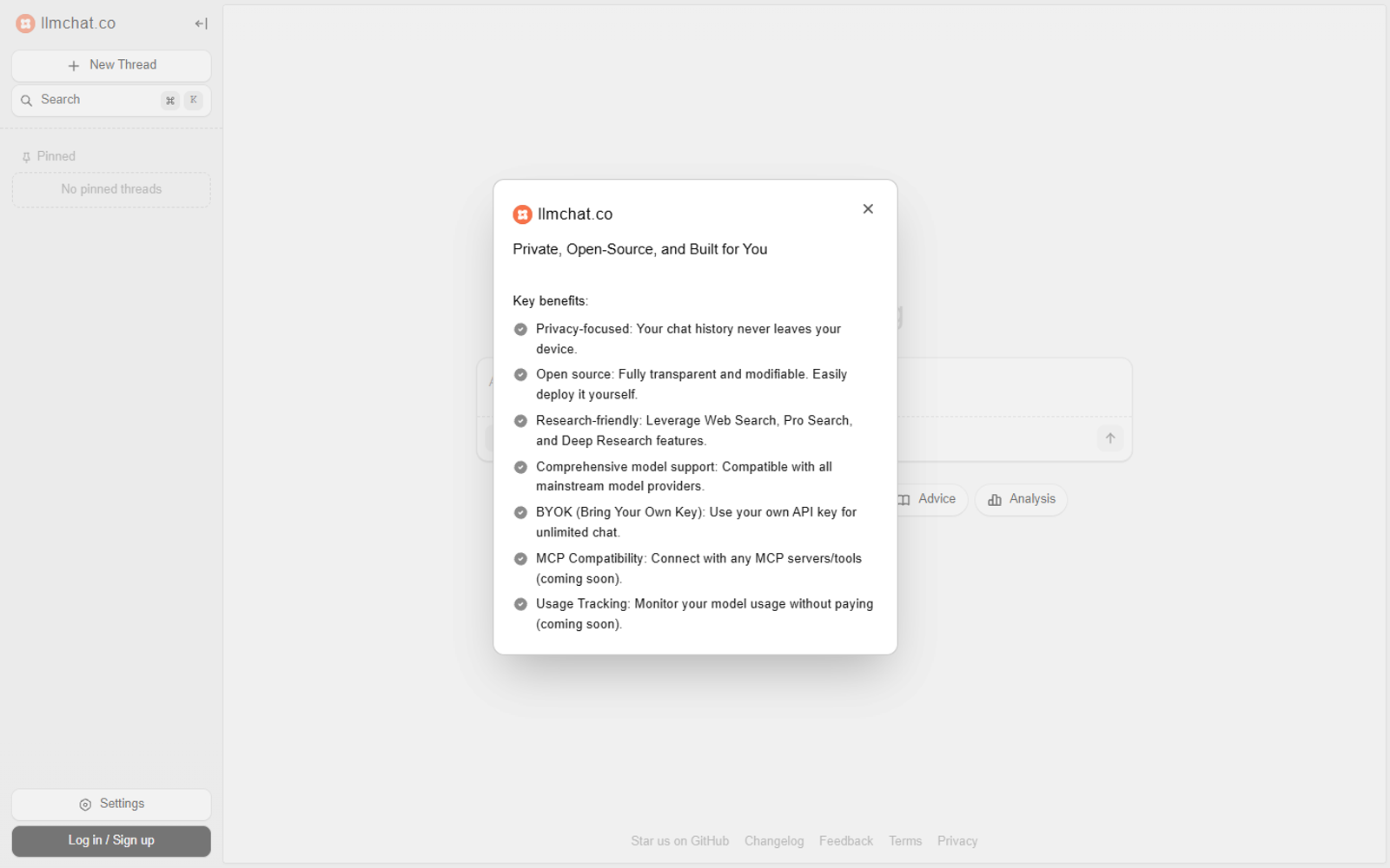 llmchat.co — это приватный, открытый AI-чат и исследовательский инструмент, созданный для глубокого анализа информации и продвинутых рабочих процессов с агентами.