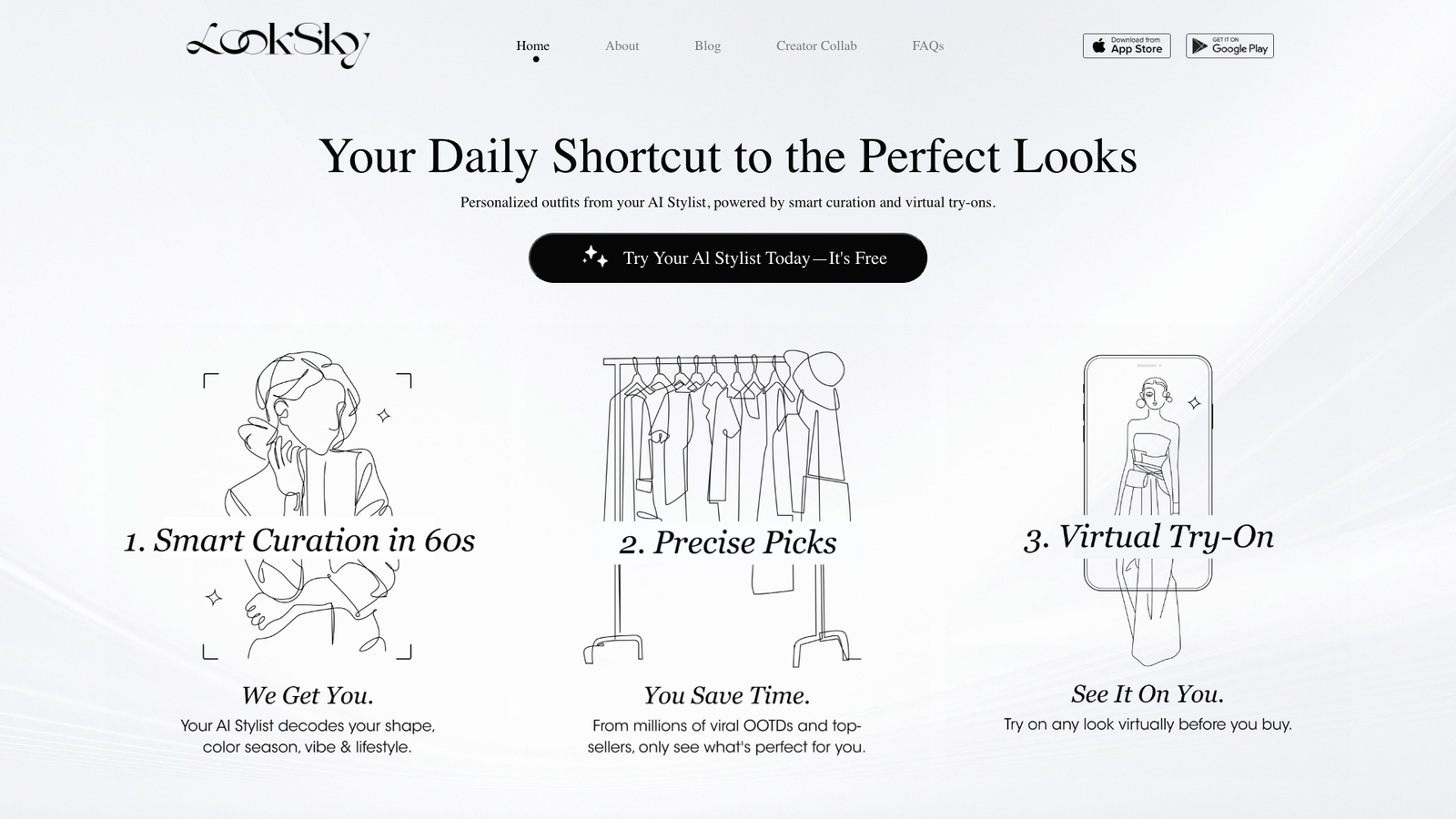 LookSky — это AI-стилист для повседневных и особых образов, который собирает тренды из TikTok и Instagram и превращает их в персональные подборки одежды. Вместо бесконечной ленты соцсетей вы получаете уже отфильтрованные, актуальные луки под свой стиль и фигуру.