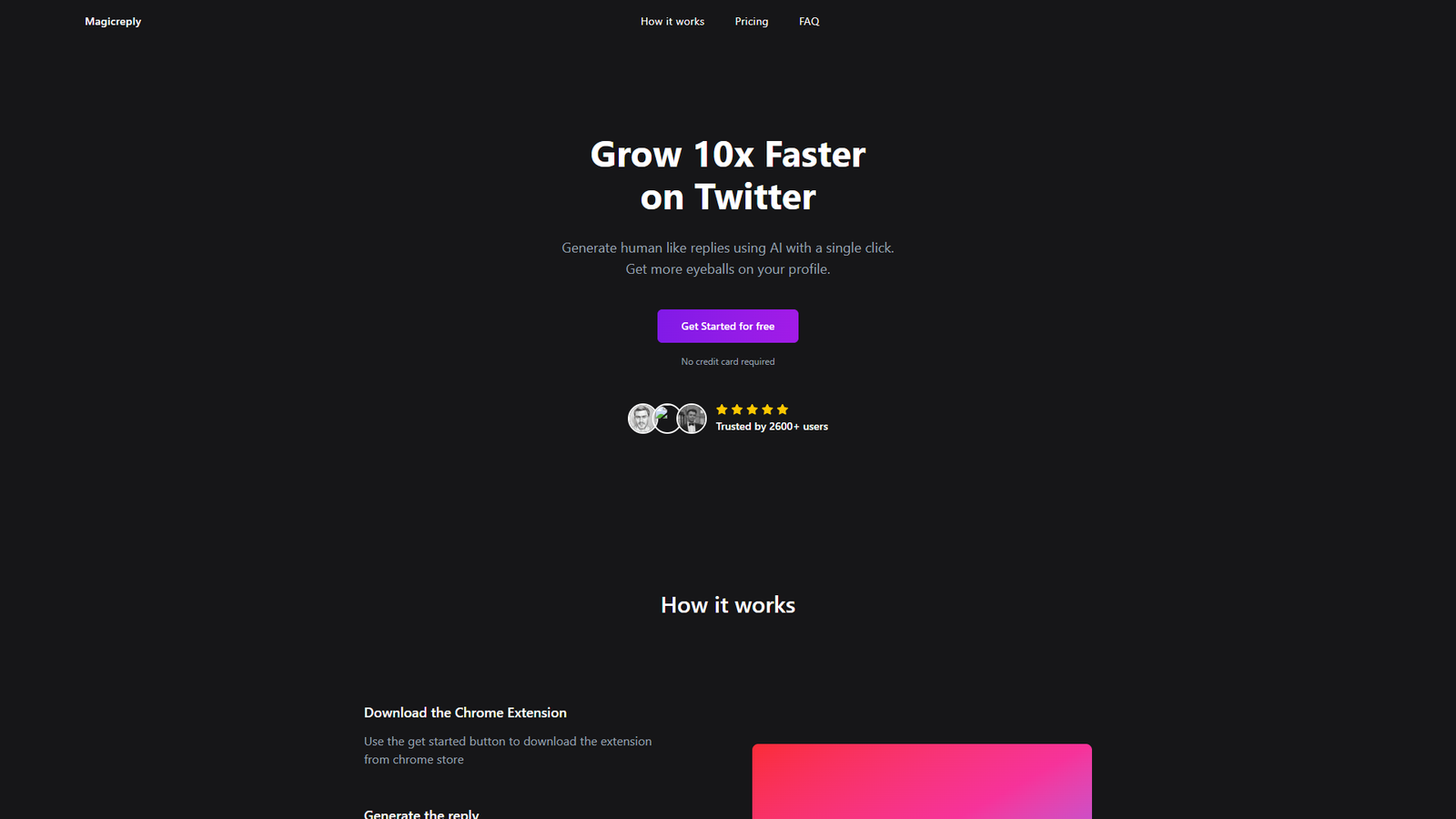 Magicreply — инструмент для быстрого роста аккаунта в X (Twitter) за счет умных ответов на твиты. Расширение для Chrome добавляет к полю ответа специальную кнопку, которая генерирует вариант реплая на основе контекста обсуждения.
