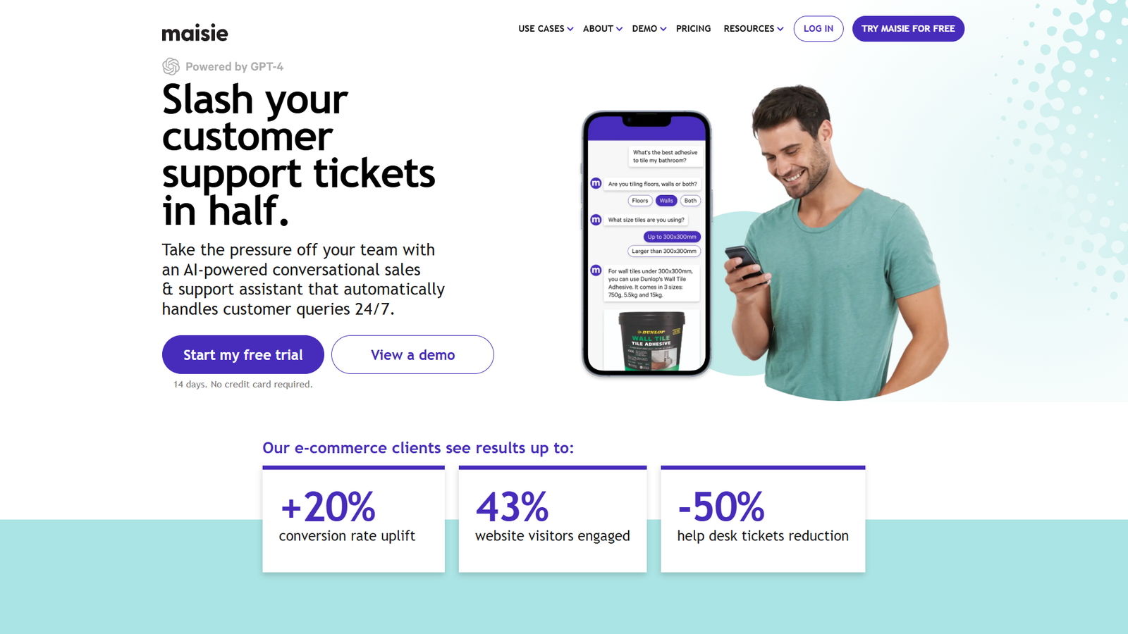 Maisie AI ориентирован на интернет-магазины и e-commerce-бизнесы, которым важно быстро внедрить AI-чатбота без сложной разработки. Доступен бесплатный пробный период на 14 дней без привязки банковской карты, что позволяет протестировать влияние бота на конверсию и поддержку без рисков.