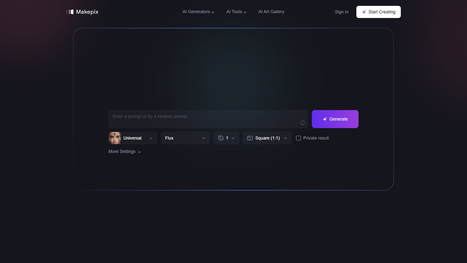 С помощью Makepix вы можете за несколько секунд создать оригинальные изображения: иллюстрации, концепт-арт, фоны и обложки. Вводите текстовый запрос, настраивайте стиль и параметры, используйте негативные промпты и случайное зерно (Random Seed), чтобы точнее контролировать результат. Генерация может быть приватной, что удобно для коммерческих задач.