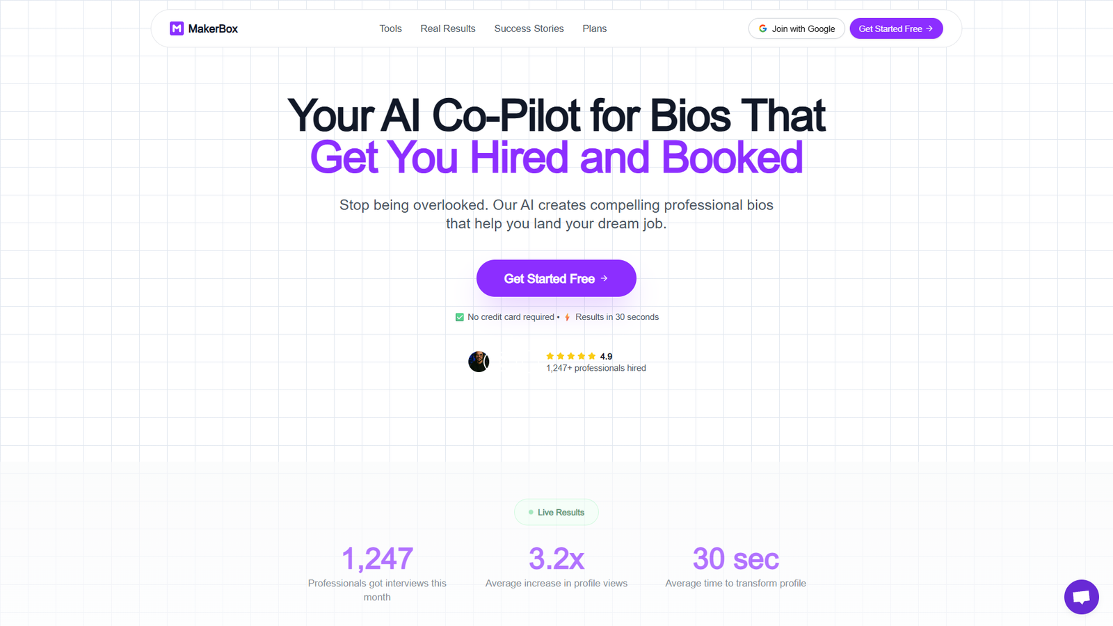 Среднее время генерации нового описания — около 30 секунд. Создатели показывают метрики: рост просмотров профиля и количество приглашений на интервью у пользователей. MakerBox подходит специалистам, фрилансерам, консультантам и создателям контента, которым нужно обновить позиционирование без долгой работы с копирайтером.