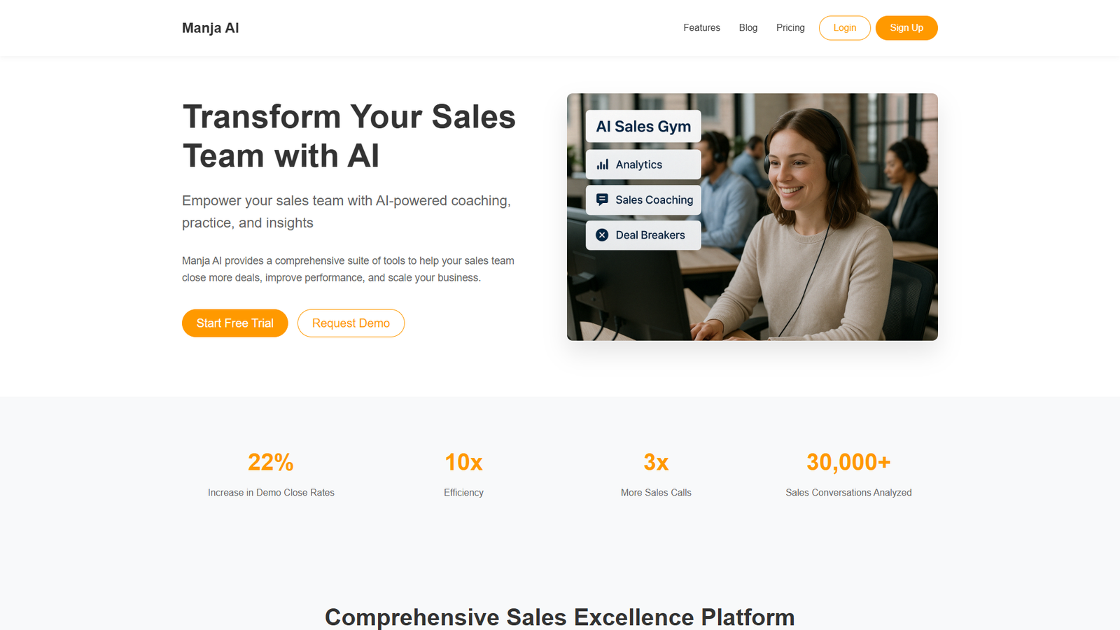 Manja.AI фокусируется на росте эффективности отделов продаж за счёт прикладного ИИ. В одном интерфейсе объединены тренажёр для отработки сценариев, персональный AI-коуч и конструктор плейбуков, который фиксирует лучшие практики команды.