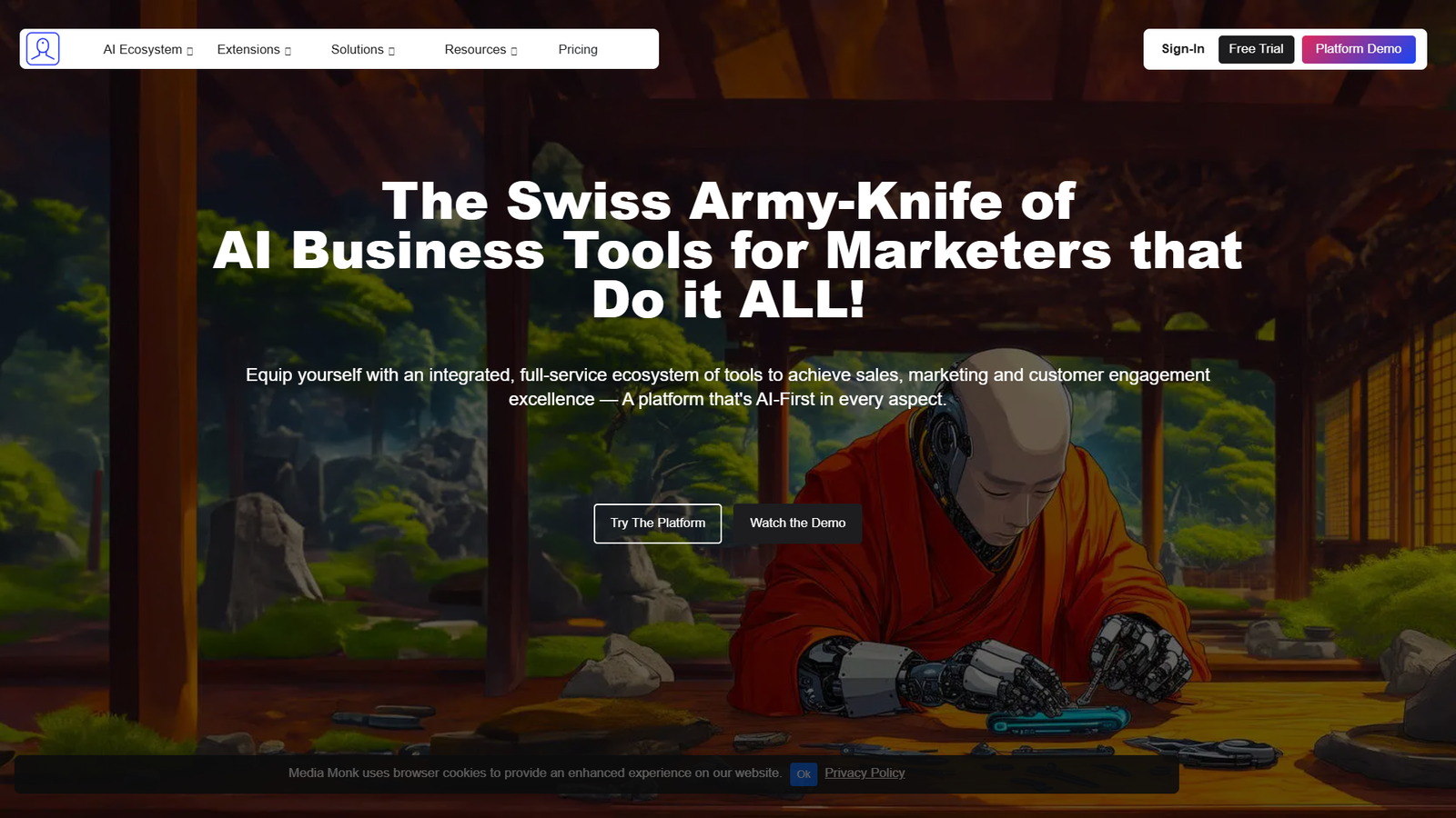 MediaMonk.ai — универсальная AI-платформа для маркетологов, которую позиционируют как «швейцарский нож» бизнес‑инструментов. Сервис объединяет ключевые задачи контент-маркетинга, коммуникаций и вовлечения клиентов в одном месте.