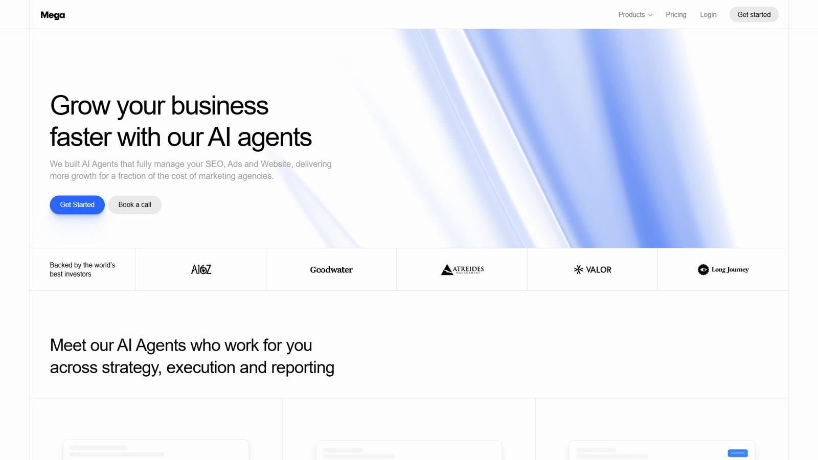 Mega — это набор AI-агентов для маркетинга, которые берут на себя SEO, платную рекламу и работу с сайтом. Инструмент ориентирован на стартапы и малый бизнес, где нет ресурса содержать полноценное маркетинговое агентство или большую команду.
