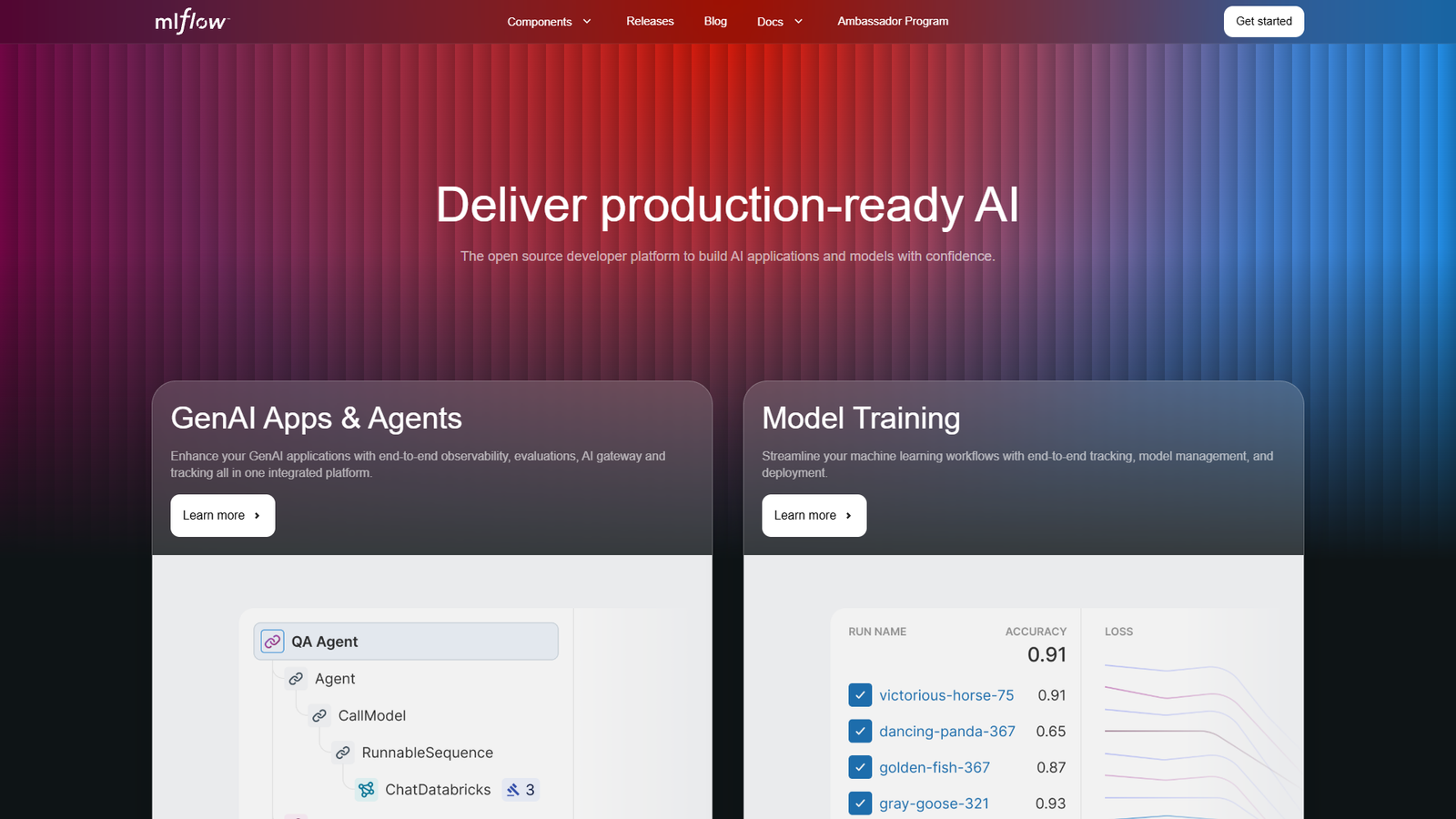 Инструмент структурирует весь цикл обучения: от логирования гиперпараметров и метрик до регистрации артефактов и развёртывания. Поддерживаются популярные фреймворки — PyTorch, TensorFlow, Keras, HuggingFace, Spark. Это снижает хаос в экспериментах и ускоряет переход от ноутбука к продакшену.