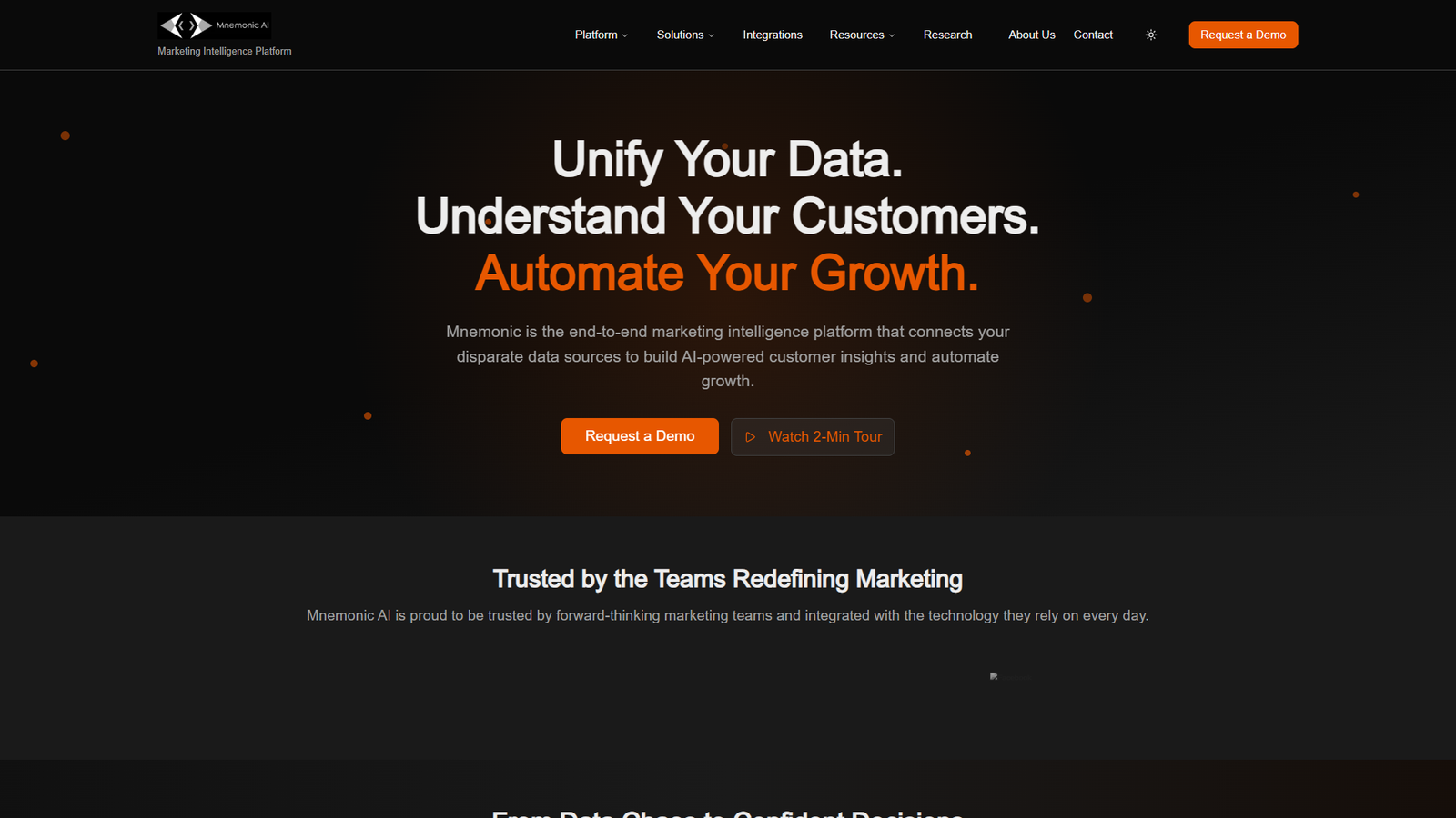 Mnemonic AI — платформа end-to-end marketing intelligence для команд маркетинга, которым нужно связать разрозненные источники данных и быстрее принимать решения на основе инсайтов.