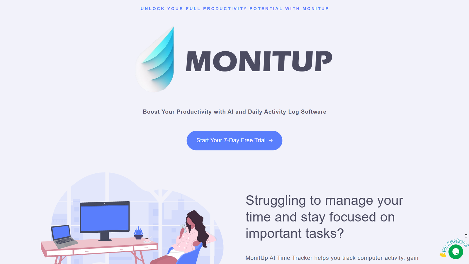 MonitUp AI Time Tracker — сервис для учёта рабочего времени и анализа активности за компьютером с помощью ИИ. Он помогает понять, куда уходит день, выявить отвлекающие приложения и улучшить фокус, особенно в удалённых командах.
