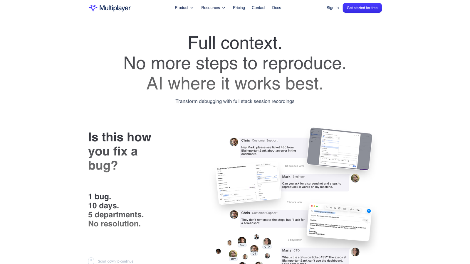 Multiplayer помогает командам разработки разбирать сложные баги за минуты, а не за дни. Вместо бесконечных «шагов для воспроизведения» инженеры видят полную картину: что делал пользователь, какие запросы шли на бэкенд, какие ошибки возникали в стеке.