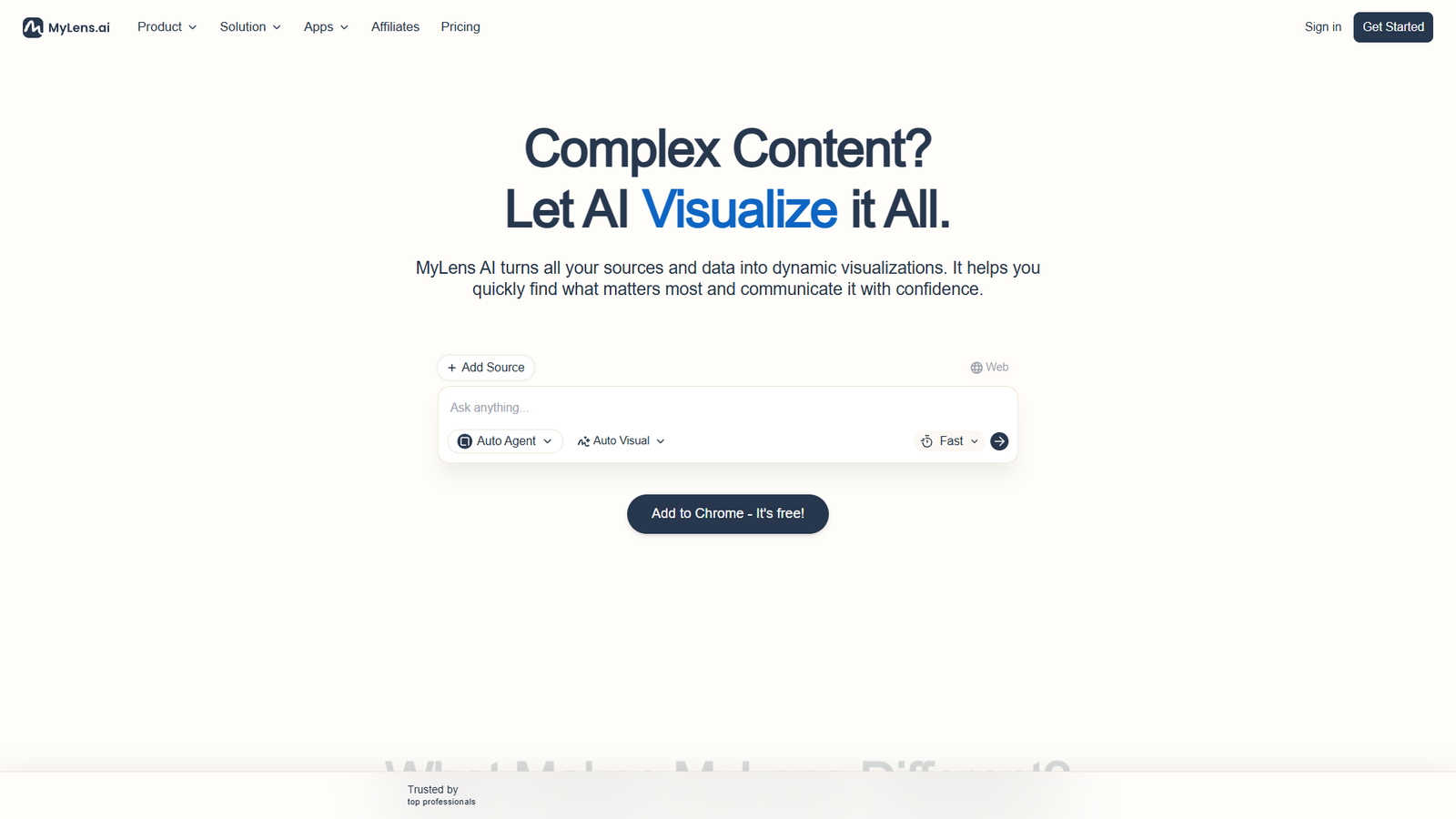 MyLens AI — это инструмент, который превращает сложный контент в наглядные динамические визуализации с помощью искусственного интеллекта. Сервис работает с множеством источников: PDF, Word, PowerPoint, таблицы, изображения, YouTube, ссылки и обычный текст.