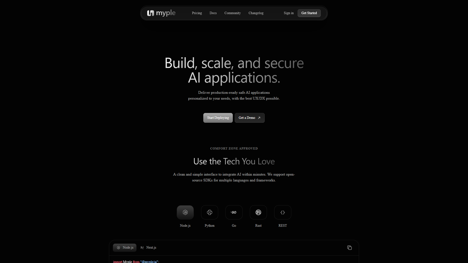 Поддерживаются открытые SDK для Node.js, Python, Go, Rust и REST. Это упрощает встраивание AI‑функций в существующие бэкенды и фронтенды, включая Next.js. Разработчик работает с привычными инструментами, а Myple берёт на себя маршрутизацию запросов, конфигурацию агентов и мониторинг.