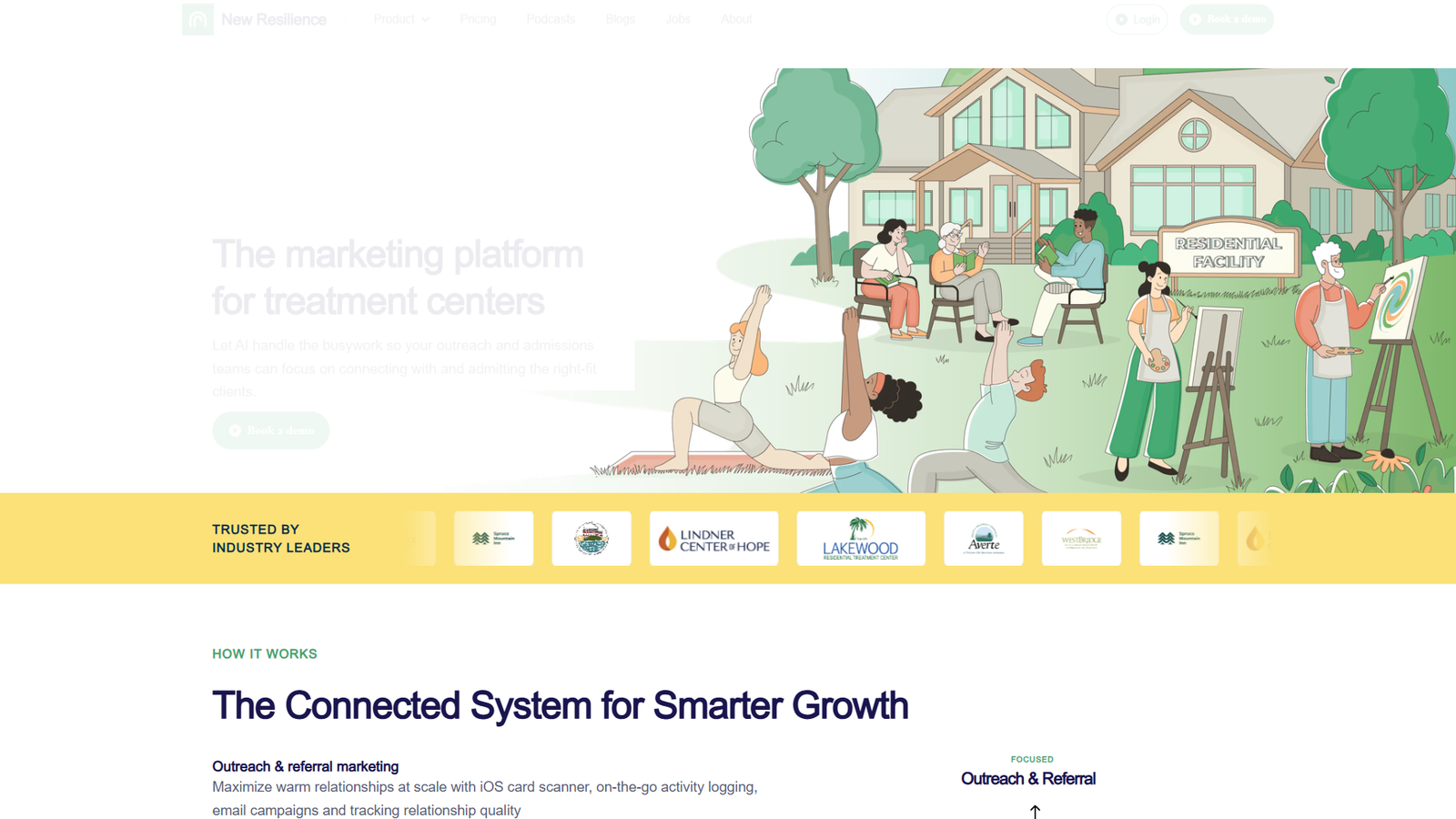 New Resilience — это специализированная CRM-платформа для центров лечения зависимостей и психического здоровья, разработанная с учетом требований HIPAA. Сервис помогает выстраивать системный маркетинг, усиливать работу с рефералами и оптимизировать путь клиента от первого контакта до зачисления в программу.