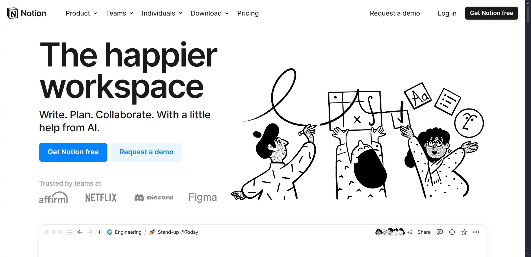 Notion AI бесплатно оказывает поддержку взаимодействия с такими приложениями, как Slack и Google Drive, для поиска информации и обновлений внутри интегрированных рабочих пространств.