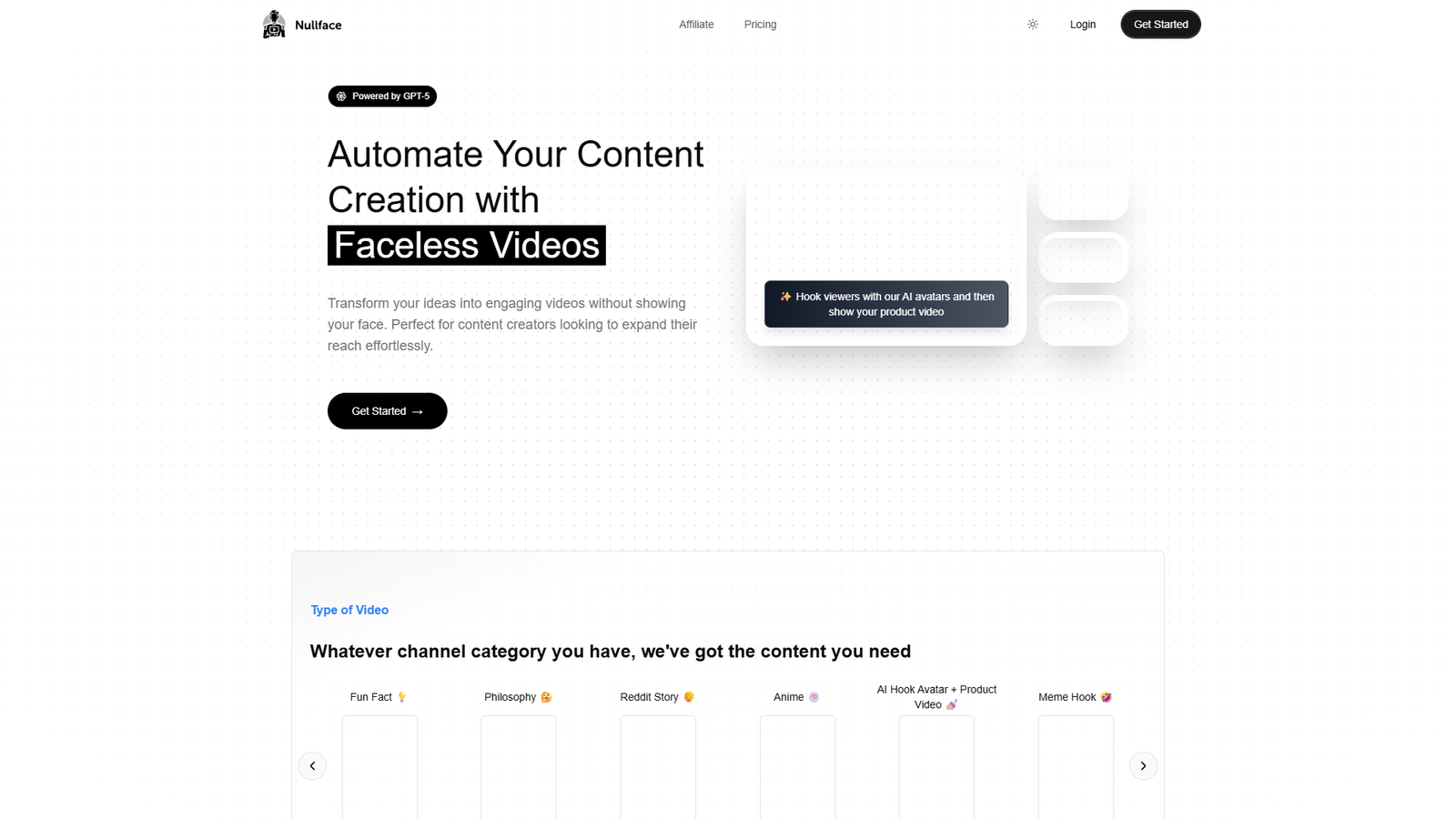 Nullface AI использует ИИ-аватаров и сценарии, чтобы удерживать внимание зрителя с первых секунд. Это особенно полезно для тех, кто хочет развивать личный бренд или нишевые каналы, не показывая себя в кадре.