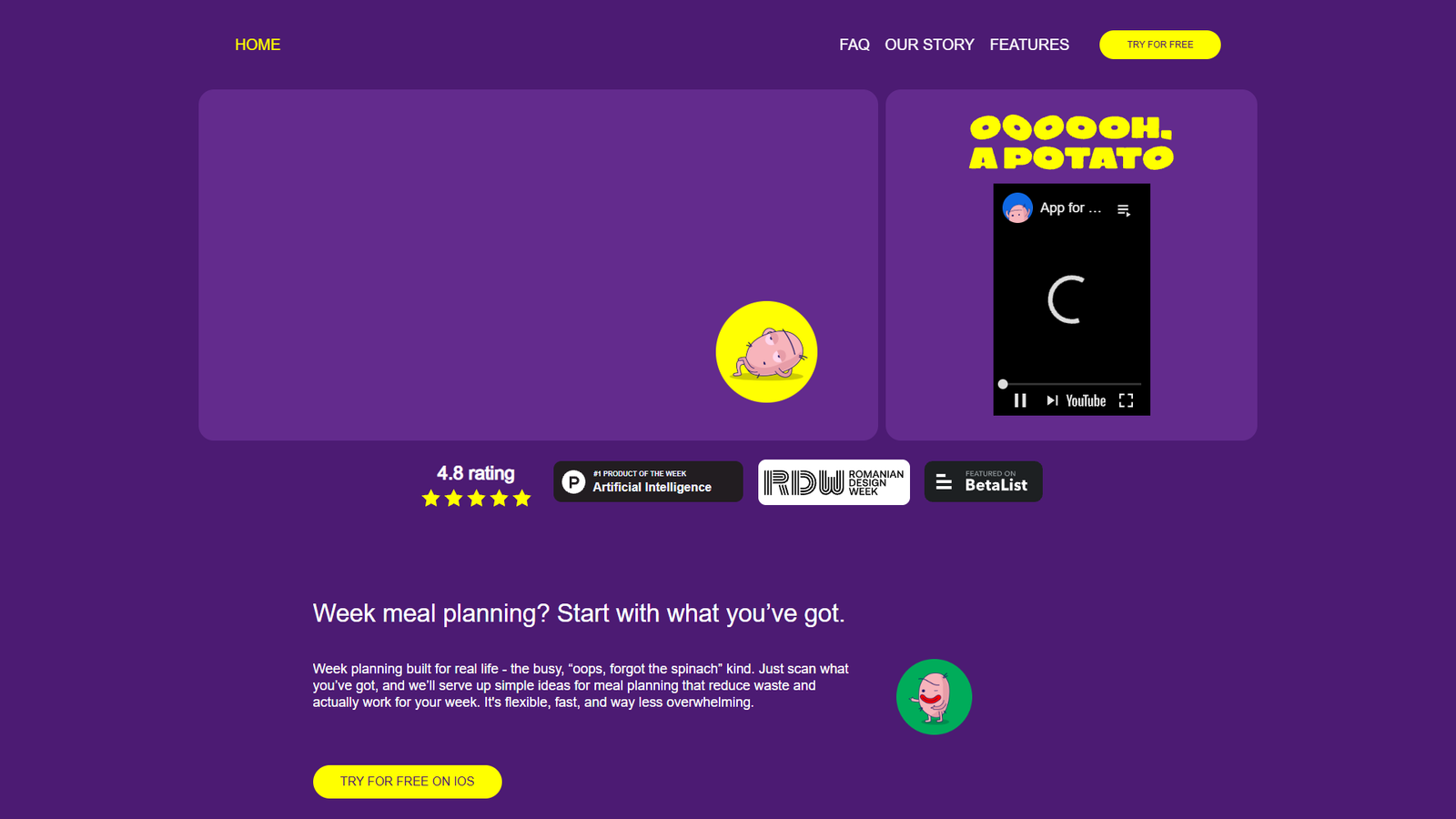 Oh A Potato — это приложение для планирования питания на неделю, которое начинает не с абстрактных списков, а с того, что уже лежит в вашем холодильнике. Достаточно навести камеру на продукты, и алгоритмы подберут простые идеи блюд под реальное содержимое кухни.